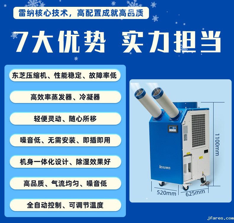6、两个冷风口均可270度摆风,适用于3-5个岗位的降温